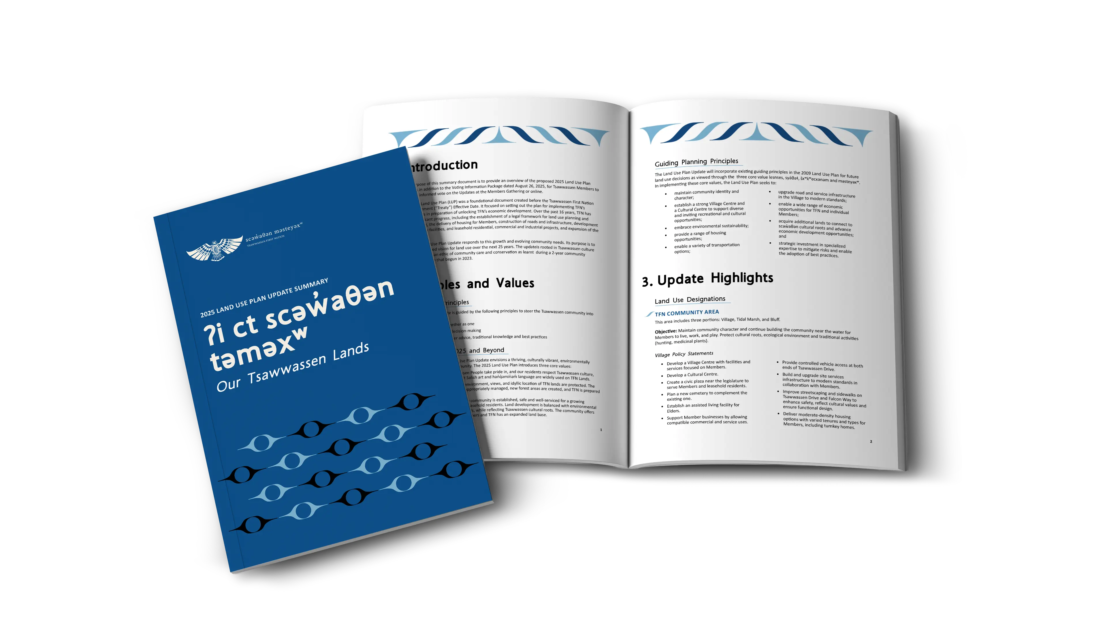 scəẁaθən məsteyəxʷ (Tsawwassen First Nation) is a self-governing Coast Salish Nation and Treaty government. As the Nation continues to plan, build, and implement new initiatives, effective communication has become essential for both Members and external partners. To support this work, scəẁaθən məsteyəxʷ partnered with us to produce print materials that strengthen credibility and keep people informed.